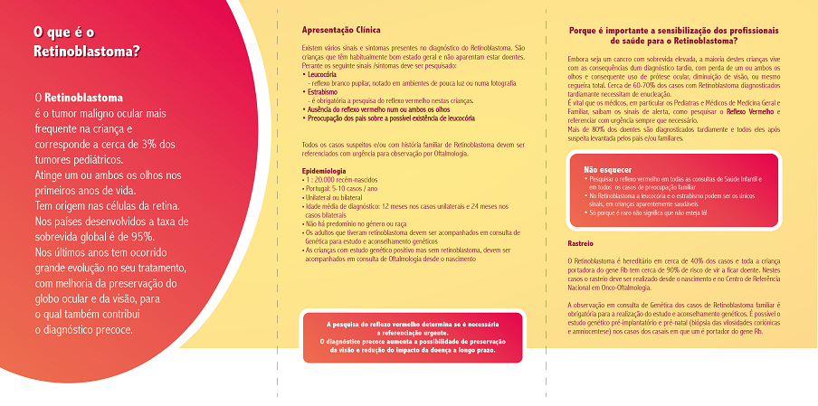 É fundamental a sensibilização dos profissionais de saúde dedicados à saúde infantil para a importância do diagnóstico atempado do Retinoblastoma através da pesquisa do Reflexo Vermelho Ocular, uma técnica de fácil execução, que será incluída nos itens a avaliar no BSIJ e no PNSIJ em todas as consultas de saúde infantil desde o nascimento até aos 5 anos de idade.