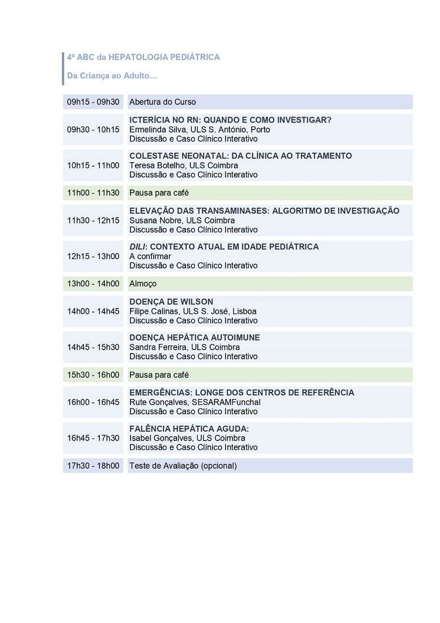 Organização: Unidade de Hepatologia e Transplantação Hepática Pediátrica da ULS Coimbra e pelo Núcleo de Hepatologia da Sociedade Portuguesa de Gastrenterologia, Hepatologia e Nutrição Pediátrica