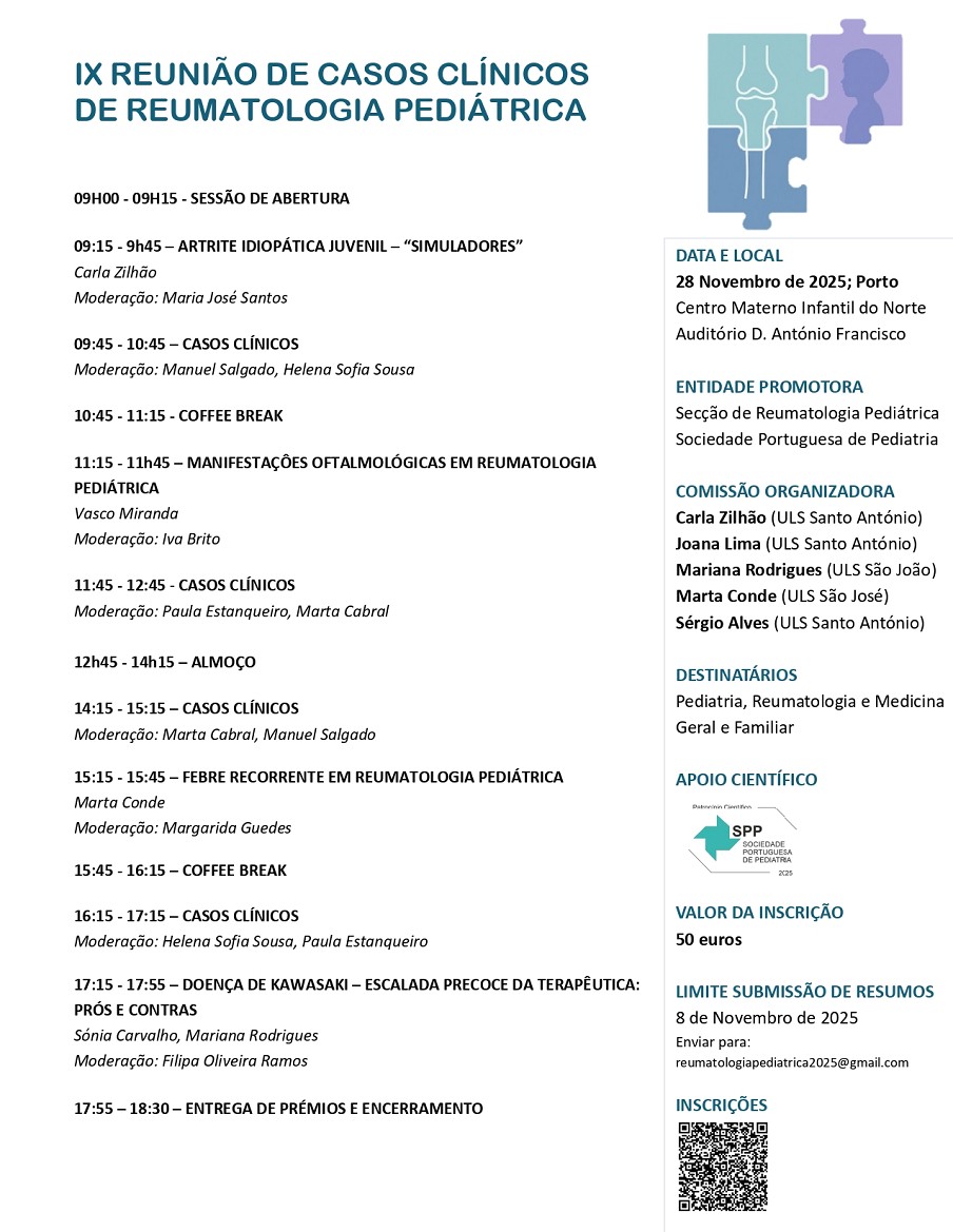 Organização: Secção de Reumatologia Pediátrica da Sociedade Portuguesa de Pediatria