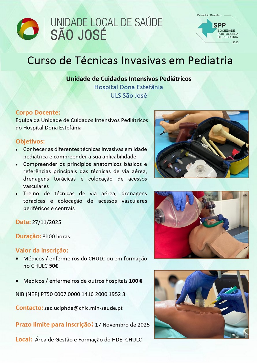 - Conhecer as diferentes técnicas invasivas em idade pediátrica e compreender a sua aplicabilidade